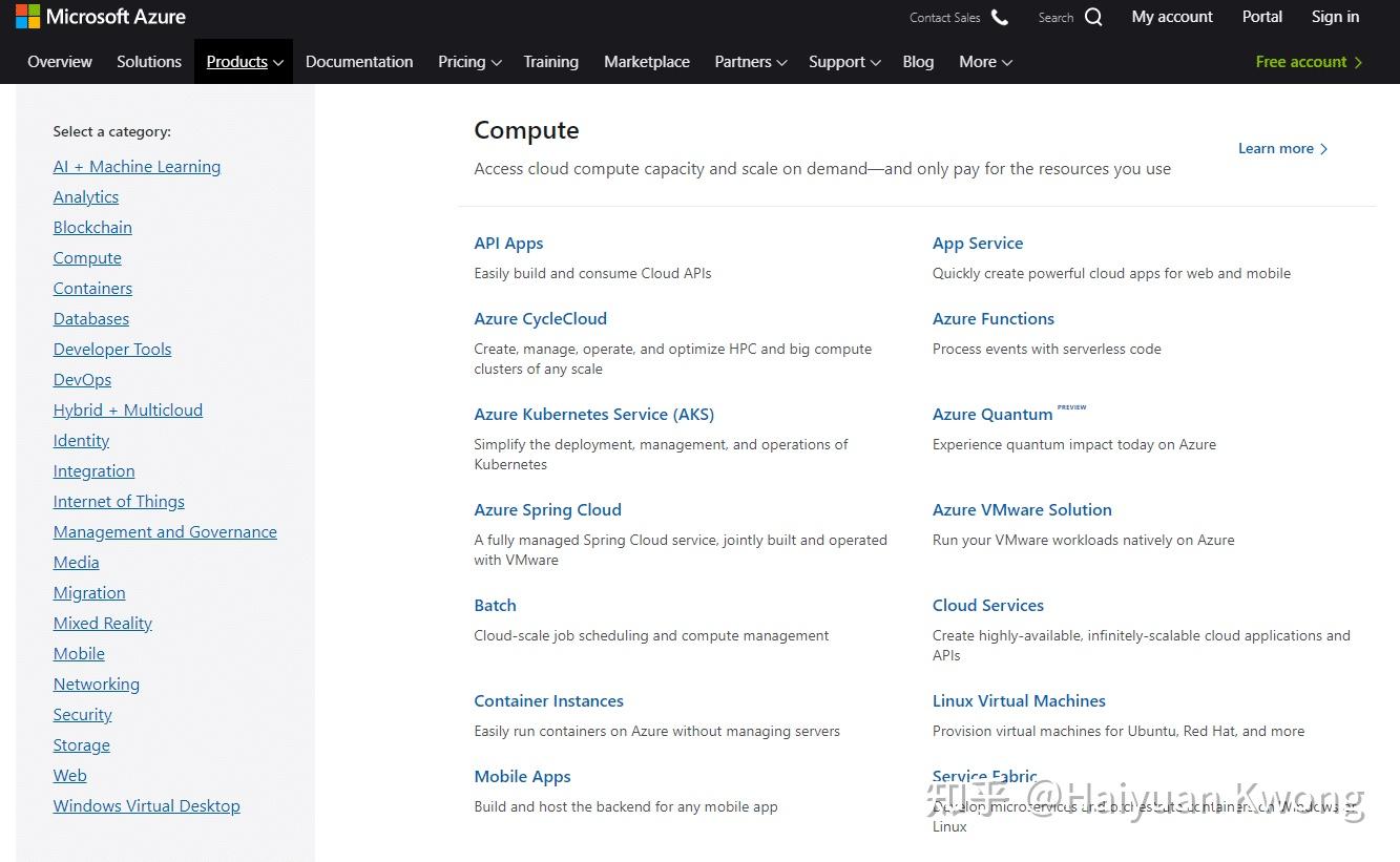 | 计算机运算 | Azure虚拟机(Linux和Windows) |