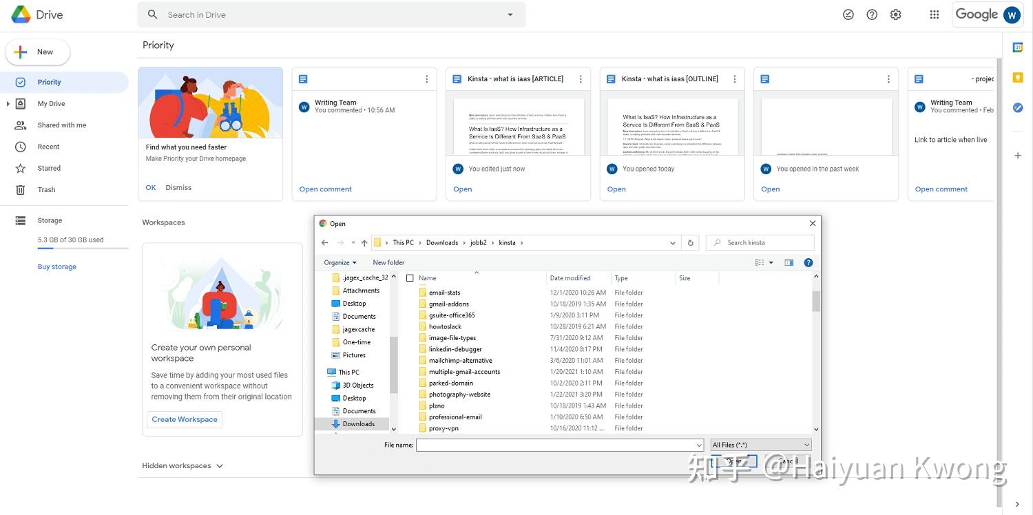 这就是Google Drive的工作方式:您可以上传文件,共享文件或查看最新的Google文档编辑内容,而无需编写或提交一行代码。