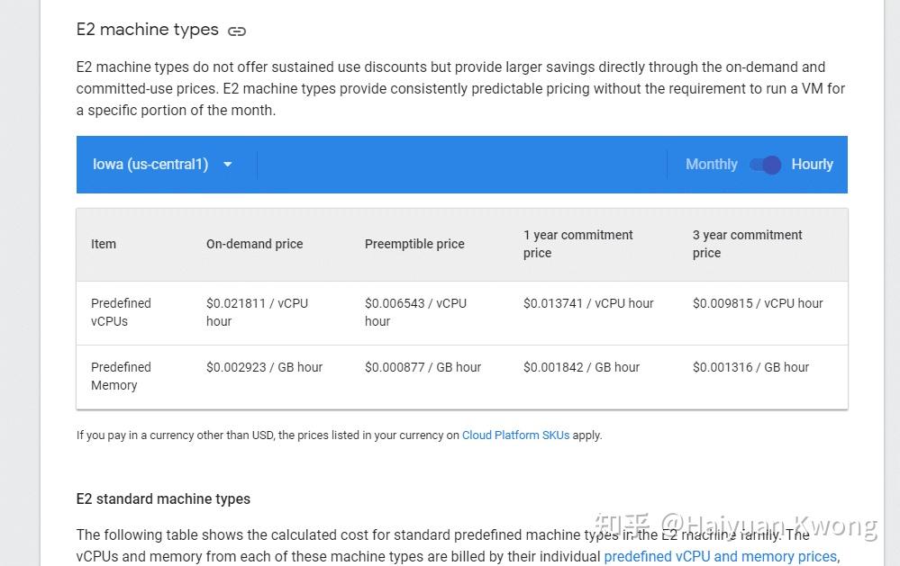 至少对于E2机器类型,每GB每小时内存的价格与AWS相当。按照1年的承诺,价格会低很多。