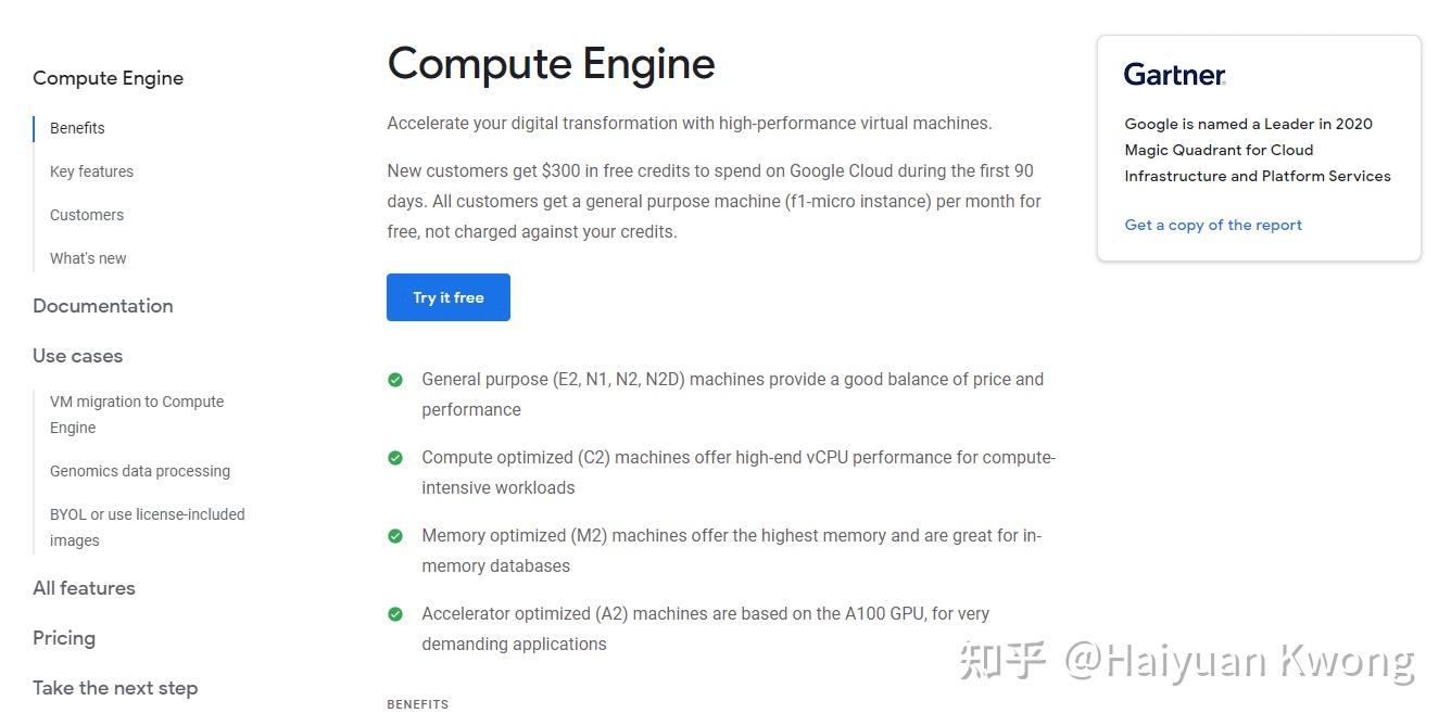Google Compute Engine 是Google Cloud的主要IaaS服务之一。您可以根据需要租用各种类型的虚拟机。