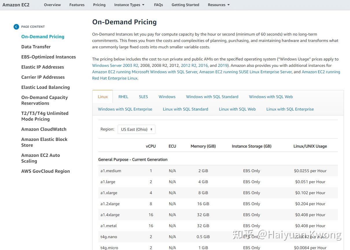 根据虚拟机规格和数据中心位置,按需价格差异很大。最便宜的实例(带有0.5 GB内存的t4g.nano)的起价为每小时0.0028美元。