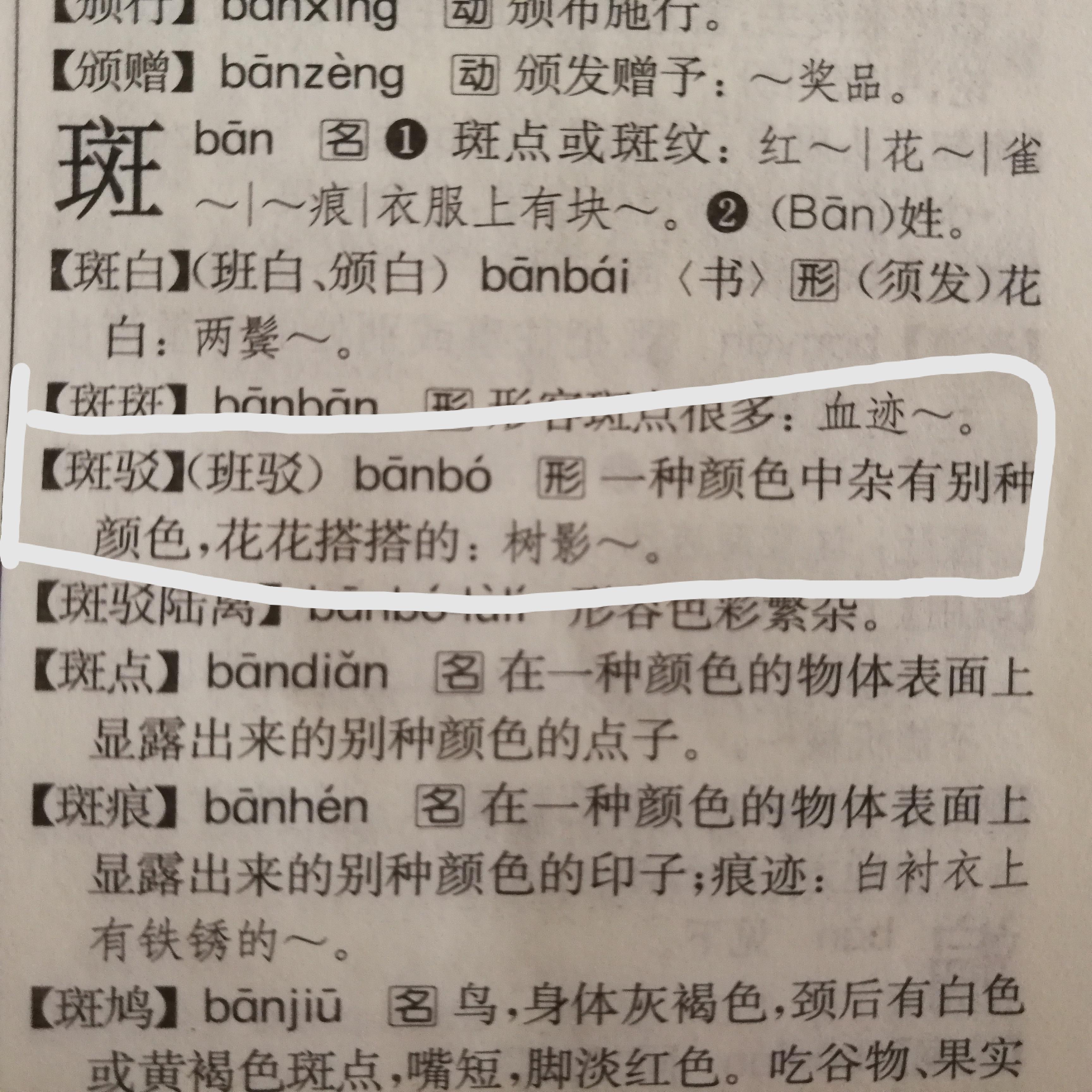 补充:评论有人说我斑驳百度的解释不对,ok,我搬来第六版《现代汉语词典》。