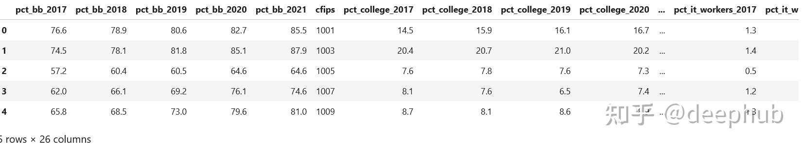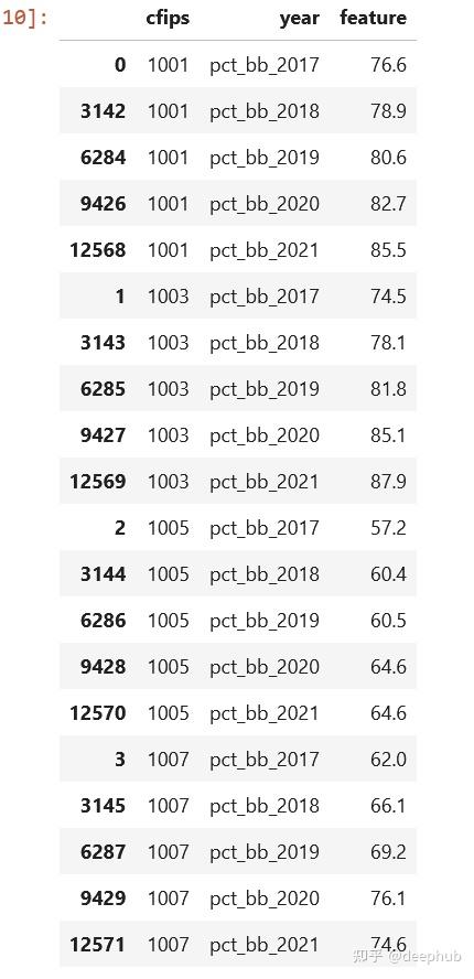 sql中经常会遇到行列转换的问题,Pandas有时候也需要,让我们看看来自Kaggle比赛的数据集。census_start .csv文件: