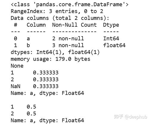 df["a"].value_counts(normalize=True, dropna=True), sep="\n\n")