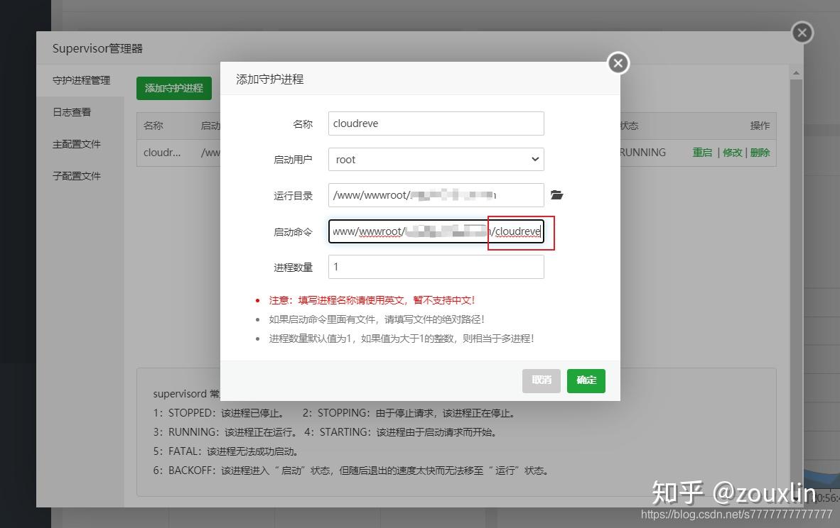 运行目录为网站根目录,启动命令是之前解压压缩包后名为的