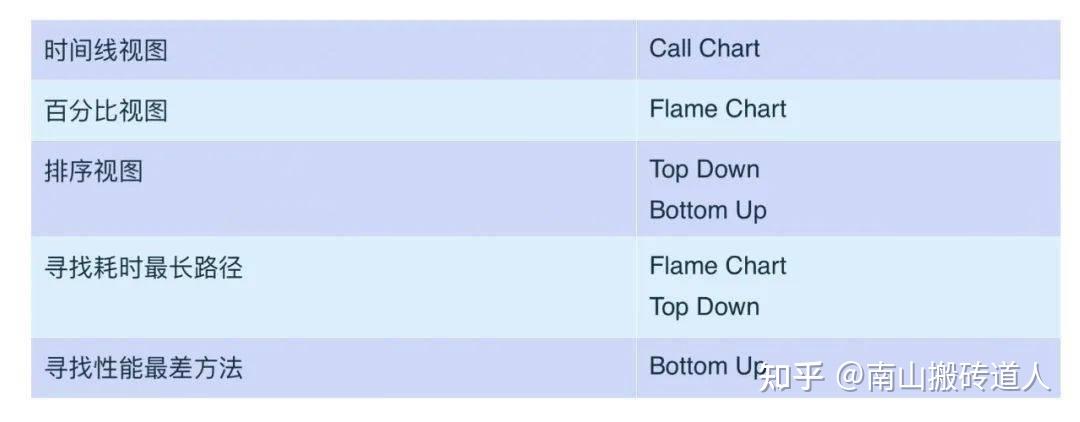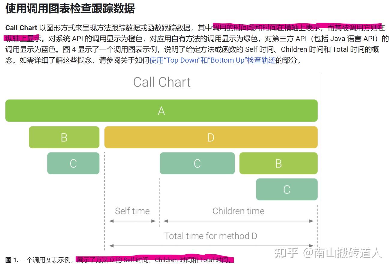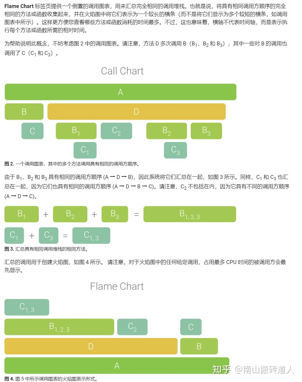 Call Chart 它基本上就是一个调用栈的重新组织和可视化呈现;横轴就是时间线,用来展示方法开始与结束的确切时间,纵轴则自上而下展示了方法间调用和被调用的关系;