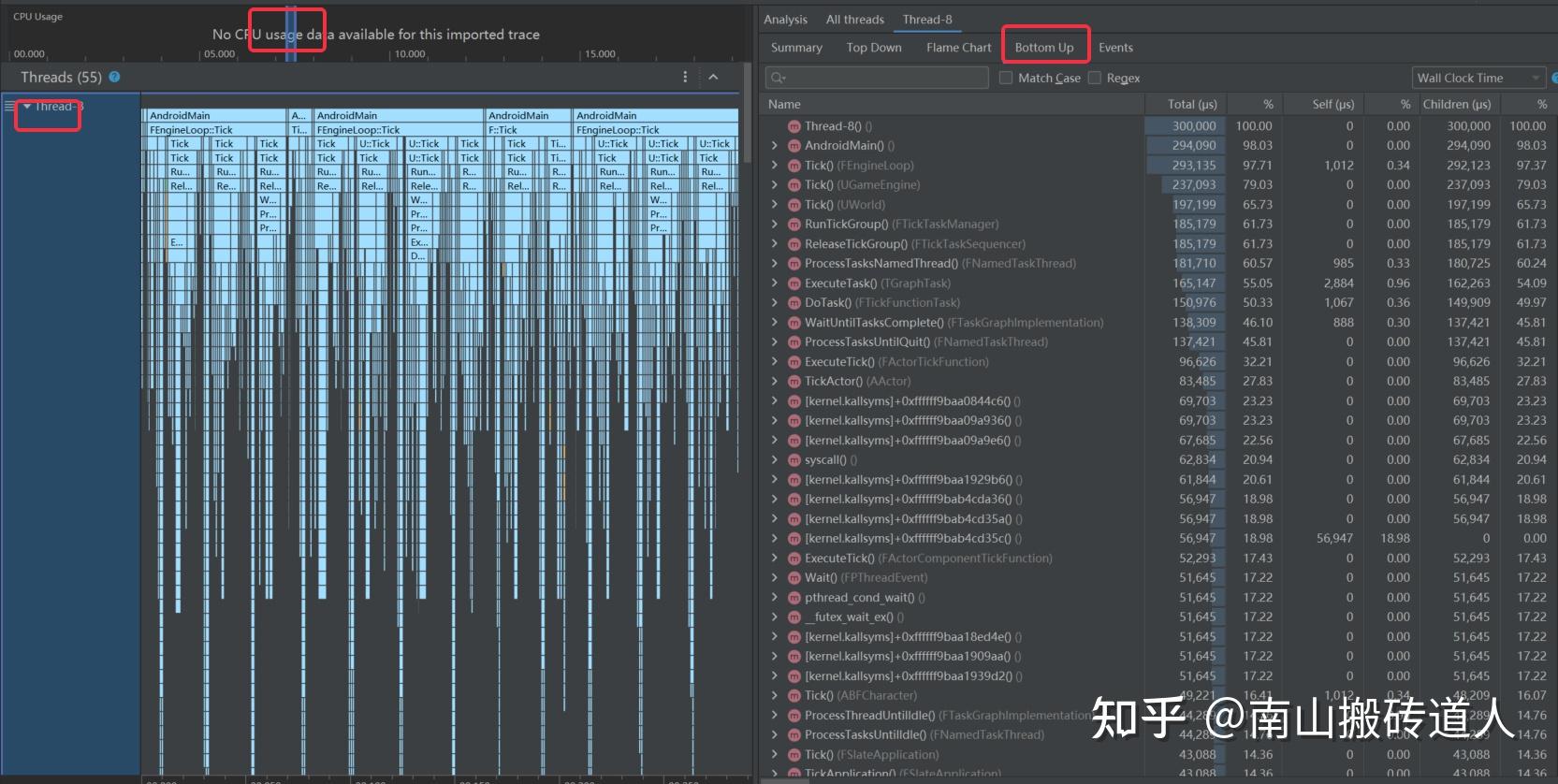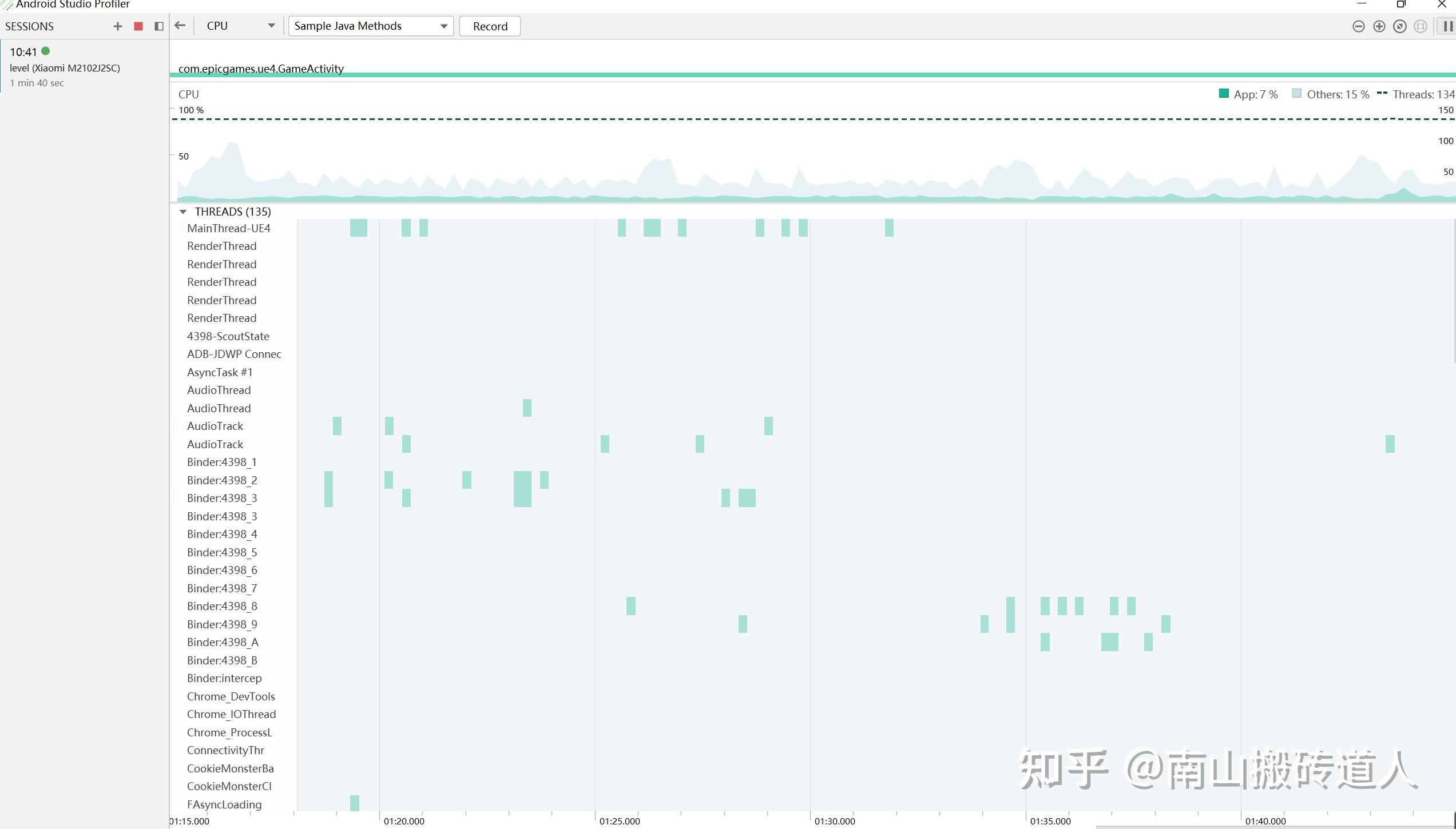 UE4提供的 UnrealFrontend Profiler 、Unreal Insights等工具也可以支持非shipping版本的移动端性能分析。但是分析工具本身还是或多或少的占用一部分性能。android studio profiler则完全不依赖UE4本身的分析,不影响APP性能,性能分析更为精准。缺点是性能数据的录制时间比较短,太长会卡死。