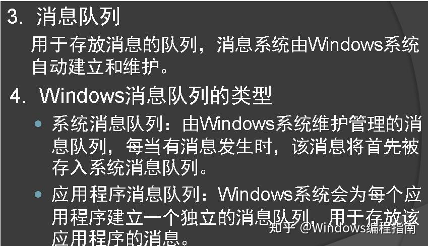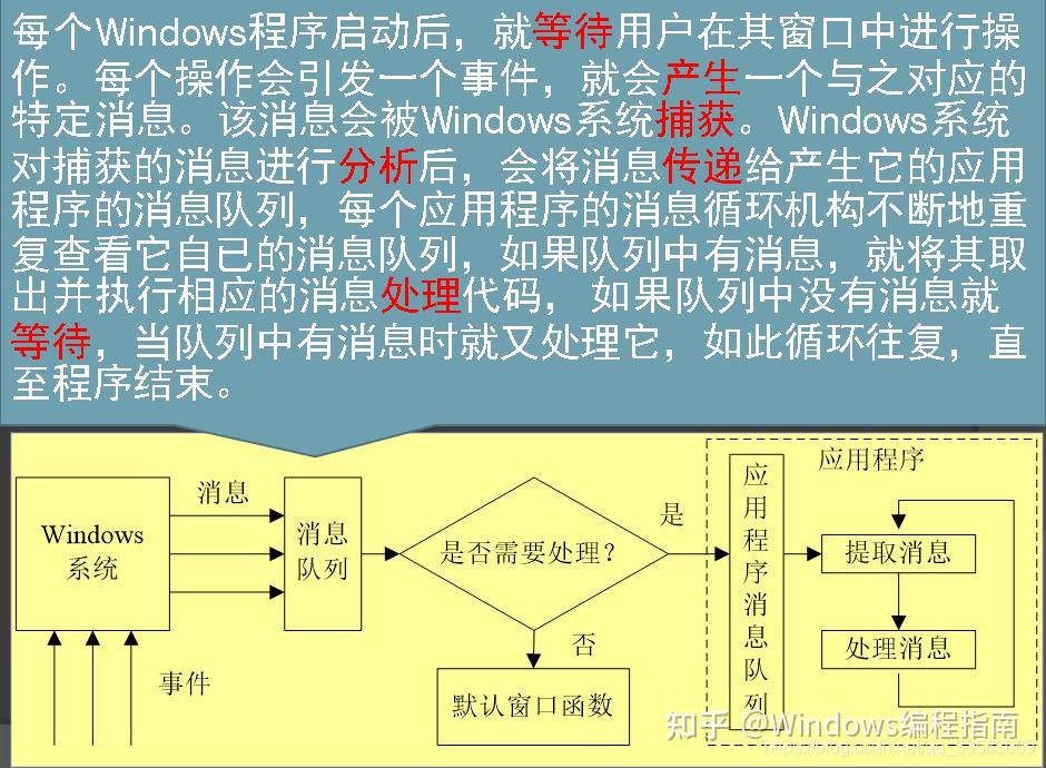 当你按下鼠标或者键盘时,Windows并不是把这个输入事件直接送给应用程序,而是将输入的事件先翻译成一个消息,然后把这个消息放入到这个应用程序的消息队列中去。