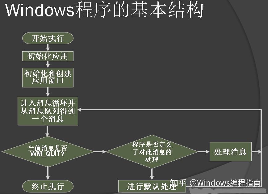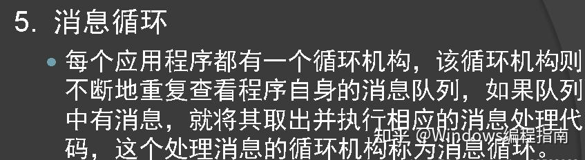 应用程序的WinMain函数通过执行一段代码从它的消息队列中来检索Windows送往它的消息。然后WinMain就把这些消息分配给相应的窗口函数以便处理它们,这段代码是一段循环代码,故称为“消息循环”。