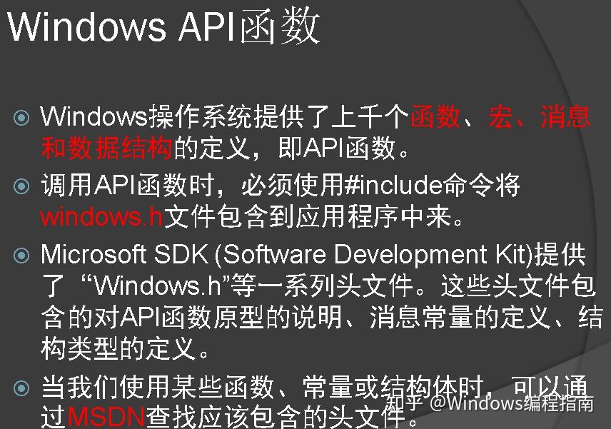 为保证Windows调用这个窗口函数,这个函数必须先向Windows登记,然后在Windows实施相应操作时回调,所以窗口函数又称为回调函数。