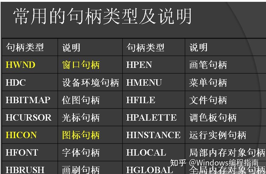 一、常用句柄类型及说明
