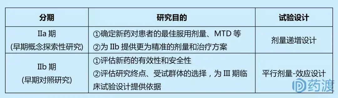 II期临床试验包括:①确定新药作用于目标患者的最大和最小有效剂量范围,为III期临床试验剂量提供参考;②新药产生疗效的血药浓度与药效学参数的关系,即药代动力学和药效学关系。根据目的不同,II期临床有时又分为IIa期和IIb期。