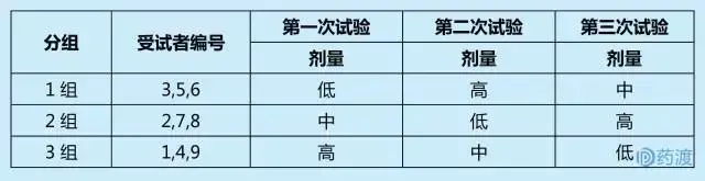 I期临床人体药代动力学试验设计一般为随机交叉自身对照,以减少不同试验周期和个体差异对试验结果的影响。目前主要有两种试验设计:2剂量双周期交叉试验设计、3剂量3周期3×3拉丁方交叉试验设计。以下以3×3拉丁方交叉试验设计为例。