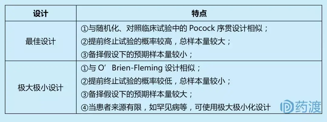 上述单臂多阶段试验计算具体样本量时,又分为最佳设计(optimal design)和极大极小设计(min-max design)。