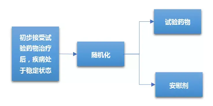 随机撤药研究是指通过接受一定时间受试药物治疗的对象出现疾病稳定性状态后,被随机分配继续使用受试药物治疗或使用安慰剂(即停用活性药物)治疗;继续接受药物治疗组和安慰剂组之间出现的任何差异都可以证明活性药物的疗效。随机撤药设计的优点是:病人经过安慰剂使用阶段比较短,伦理学风险被大大降低。随机撤药方法适合于复发性疾病发作的药物(例如抗抑郁药),抑制症状或体征(慢性疼痛、高血压、心绞痛)的药物临床对照试验等。