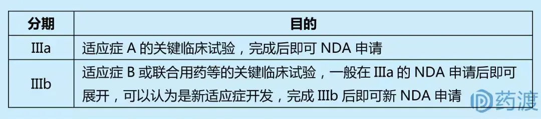 III期临床主要用来回答一个问题:新药的受益/风险比如何?为回答该问题,III期临床试验一般是具有足够受试者样本量的随机盲法对照试验。III期临床试验也可以进行量-效关系的研究,同时也可以根据药物特点、目标患者的具体情况,进行药物相互作用等的研究。III期临床试验结束时需提供有统计学意义的结论,包括:新药目标适应症、所纳入的疾病人群、主要疗效指标、给药途径、用法用量及疗程、足够支持注册申请的安全性信息,并针对有效性安全性数据进行全面的风险/效益的评估等。另外,根据不同适应症或联合用药,申办者会将III期临床进一步细分为IIIa和IIIb期,申报者完成IIIa临床试验后即可申请上市批准,这样一般可以加快上市进度,提高市场收益;而通过IIIb临床试验可以进一步扩展新药适应症,加大市场收入。