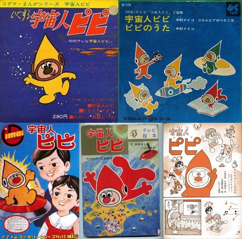 《宇宙人ピピ》,笔者译为《宇宙人皮皮》,是由“テレビ動画”(Televi动画)公司推出的一部真人与动画合成的作品,此作由后来创作了《日本沉没》的著名SF小说家小松左京和担任《8号超人》的原作的SF小说家平井和正共同创作,而当时石森章太郎也被邀请创作此作的漫画版,是日本最初的合成动画/电视剧,和《银河少年队》一样是由NHK播出。其播出开始时间为1965年4月8日,由于和前篇的各种宇宙少年的差别性故放到后期篇来讲。