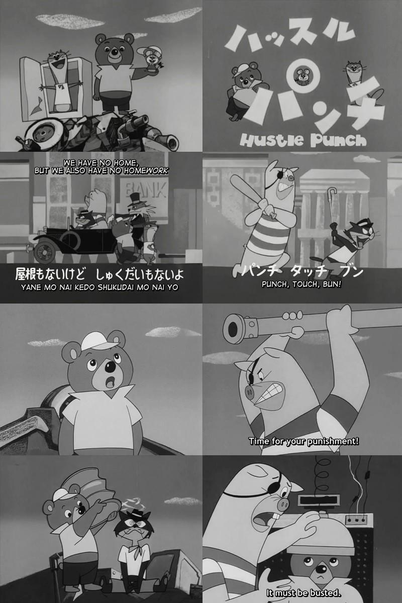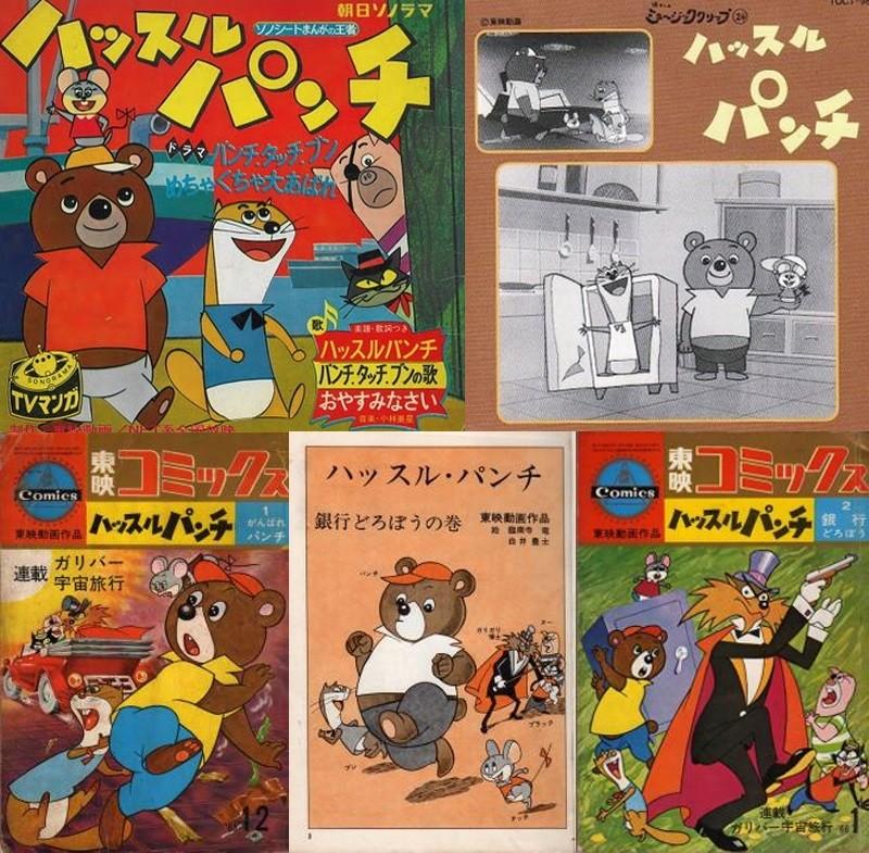 另外,东映动画在1965年末推出了名为《ハッスルパンチ》的26话动画,英文名为“Hustle Punch”,讲述了大熊Punch、老鼠Touch、鼬Bun(他们的名字来自于英文“Untouchable”)与恶役Garigari博士及其手下黑猫和黑猪斗智斗勇的故事。由森やすじ担任原案,整部动画富有美式动画的风格。