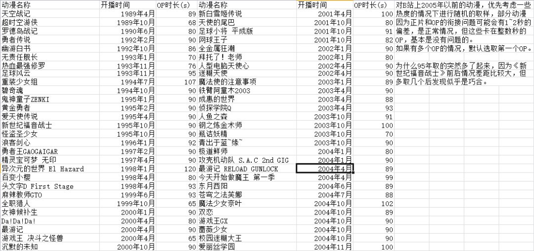 在这张2005年以前部分日本动画OP时长表可以看到,在那个时期,90秒上下的OP已经占了不少,但似乎没有什么严格的限制。