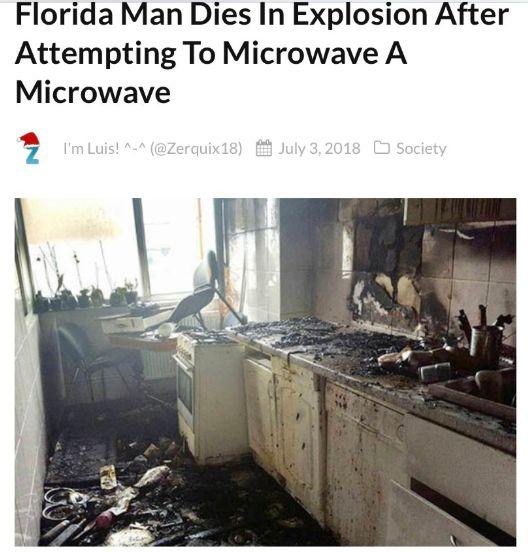 还有个叫做 Bill Davis 的男人因为突发奇想想要用微波炉加热另一个微波炉导致爆炸而被炸死的。。。