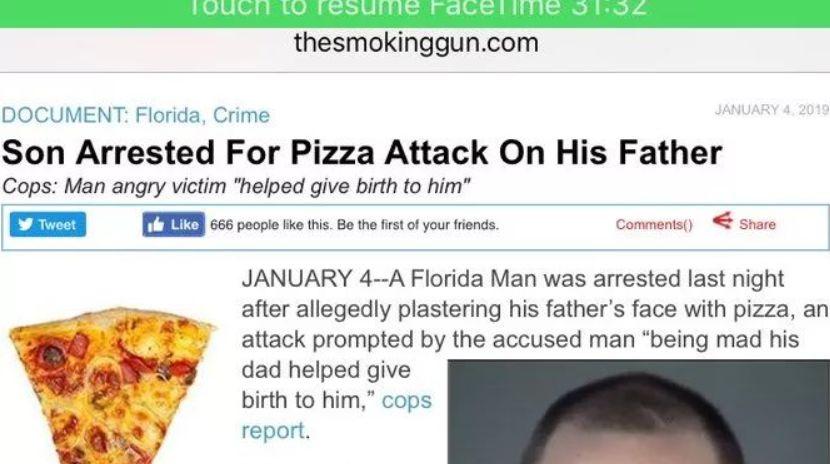 也有人因为试图用披萨攻击自己的父亲而进局子。