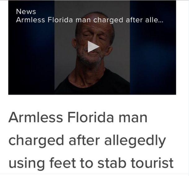 甚至有个双手残疾的佛罗里达男因为用脚踢游客而被指控。。。
