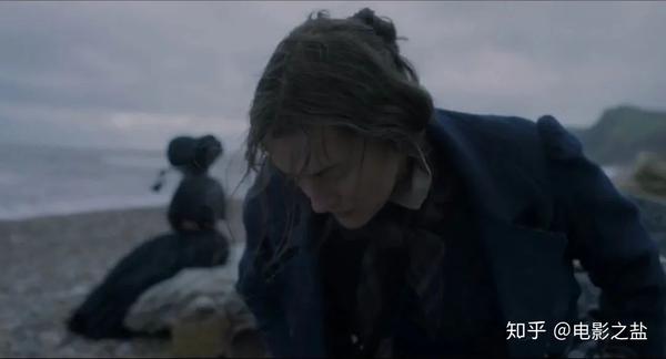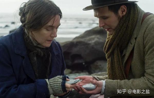 比如,找寻化石从峭壁滚下的叙事,这即表达了这个人物对化石的热爱及执着,(现实中,玛丽几次因采集化石而被塌下的石块困住,与死神擦肩而过,才获得许多举世震惊的发现)也表现了一个女性可以做到的事情太多。