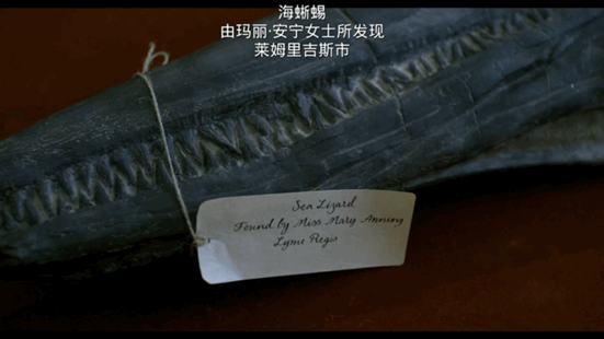 除了玛丽的几个重大发现:动物类化石,较鲜为人知的是玛丽也是正确地识别恐龙粪便(粪化石)的先驱者。也就是电影情节中,玛丽与夏洛特丈夫在海边对话的真正注脚,她一眼便可辨别出化石的本质。