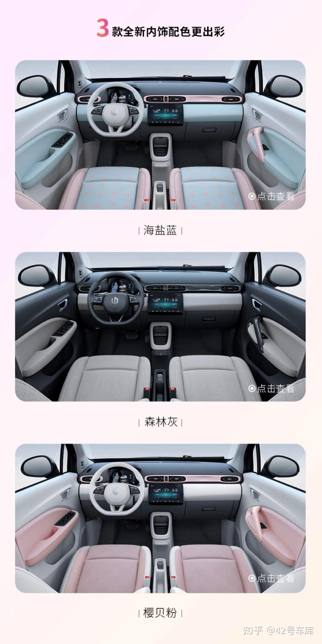 此外零跑 T03 在定位上更倾向女性化市场,新增冰川蓝、天幕黑以及一款 15 寸轮毂。内饰也新增了两款粉色配色,更讨巧。