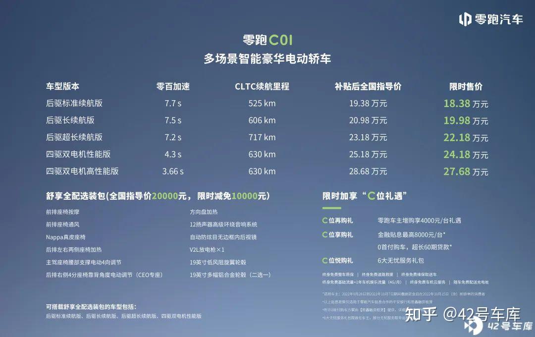 最后就是 C01 的 23 款售价,从 14.98 万元—22.88 万元。 23 款 C01 的降价幅度是非常狠的,相较 22 款的 19.38 万元—28.68 万元,可谓是断崖式下跌 。