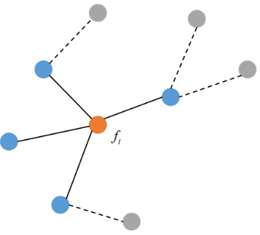 这以推广如下图所示,图中红色的顶点是 i ,蓝色的顶点是它的邻居顶点,灰色的顶点是其他顶点。