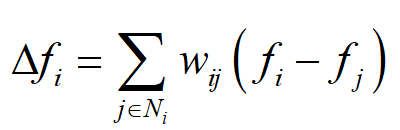 其中 N_{i} 是顶点 i 的所有邻居顶点的集合。这里我们调换了 f_{i} 和 f_{j} 的位置,和之前的拉普拉斯算子相比,相当于多了一个负号。由于图的边可以带有权重,我们可以在上面的计算公式中加上权重