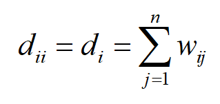 加权度矩阵 D 是一个对角矩阵,其主对角线元素为每个顶点的加权度,其他位置的元素为0