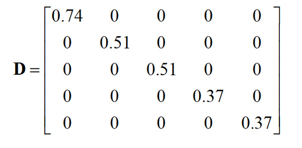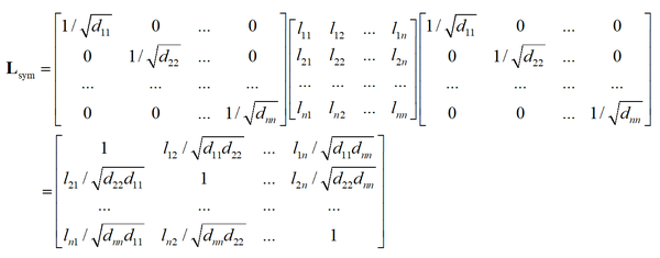 在这里 D^{1/2} 是 D 的所有元素计算正平方根得到的矩阵。位置 (i.j),i\ne j