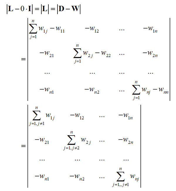 显然拉普拉斯矩阵每一行元素之和都为0。下面介绍拉普拉斯矩阵的若干重要性质。