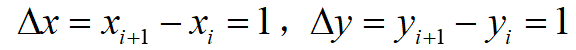 在这里 x 为水平方向, y 为垂直方向。为了简化,假设 x 和 y 的增量即步长全为1,即