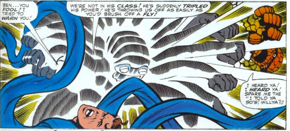 或是和下图中的里德·理查兹和石头人,切身感受被行星吞噬者的惩罚者机器人折磨的痛苦。