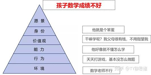 2、如果你的考虑是行为层,那么可能就要求孩子,不要玩了,抓紧刷题,晚上做作业,而忽视了从更广阔的方面思考问题的可能性。