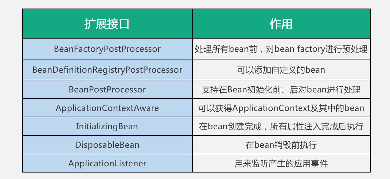 后置处理器其实可以分好多种,属于Spring的扩展点之一。我从最高赞那边抄了一幅图,请不要告诉它: