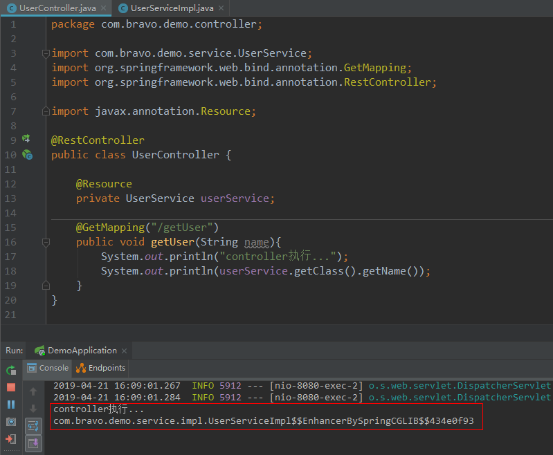 最典型的例子就是AOP。上面AOP的例子中我说过了,如果不加@Transactional,那么Controller层注入的就是普通的userServiceImpl,而加了以后返回的实际是代理对象。