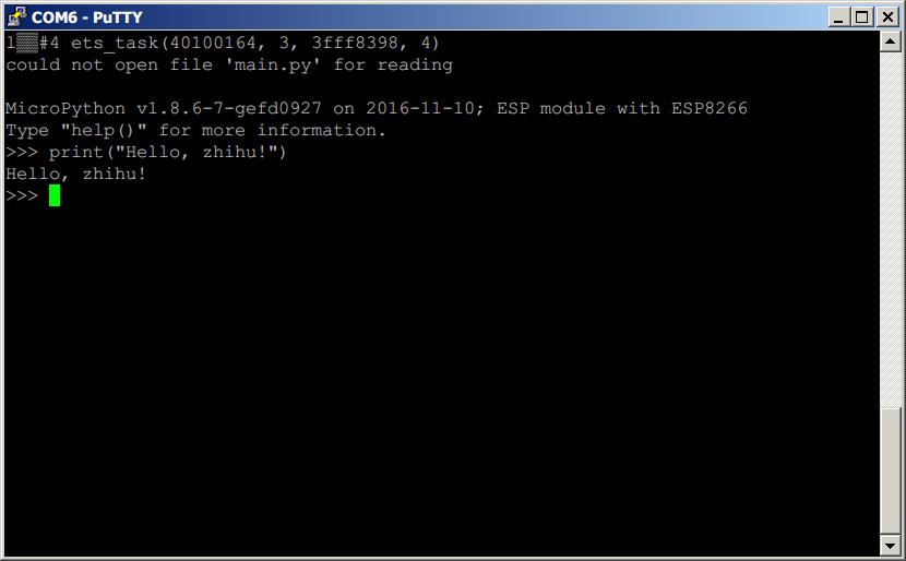 在 此处 可以得到官方最新发布的MicroPython/ESP8266固件。笔者下载的是esp8266-20161110-v1.8.6.bin