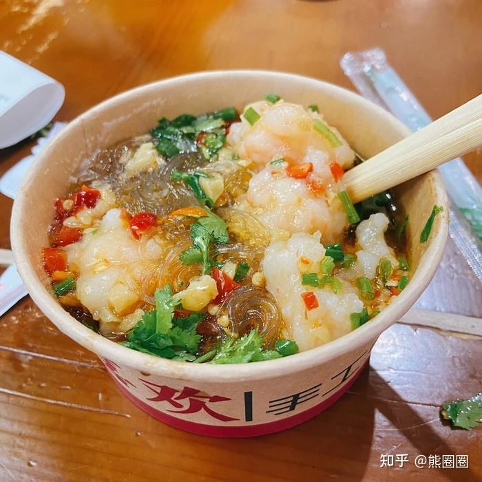 招牌是粉丝虾滑,看上去是一盒平平无奇的虾滑,配着粉丝,蒜蓉、剁辣椒、应该还有秘制汤料吧,这就不平凡了,虾滑紧实又超级Q弹,一盒有五六颗,蒜蓉味很香,粉丝泡在汤汁里,连汤汁都喝掉了。很多家商场都有店。