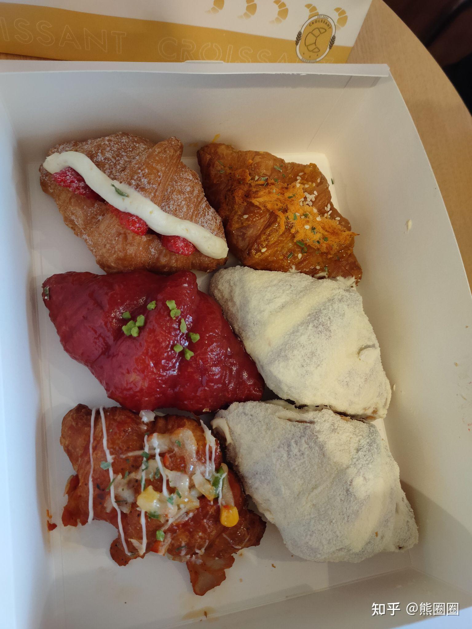 国金街负一楼开的一家甜品店,只卖可颂,可颂的味道可是有很多种,每种都好吃,榴莲、奶黄流心、草霉酱、猪排、芝士火腿、雪顶巴旦木、培根土豆焗烤、奥利奥奶油、咖啡墨西哥,芒果,个人很喜欢吃榴莲,食村新鲜,外面里面都有料,咬一口太满足了。