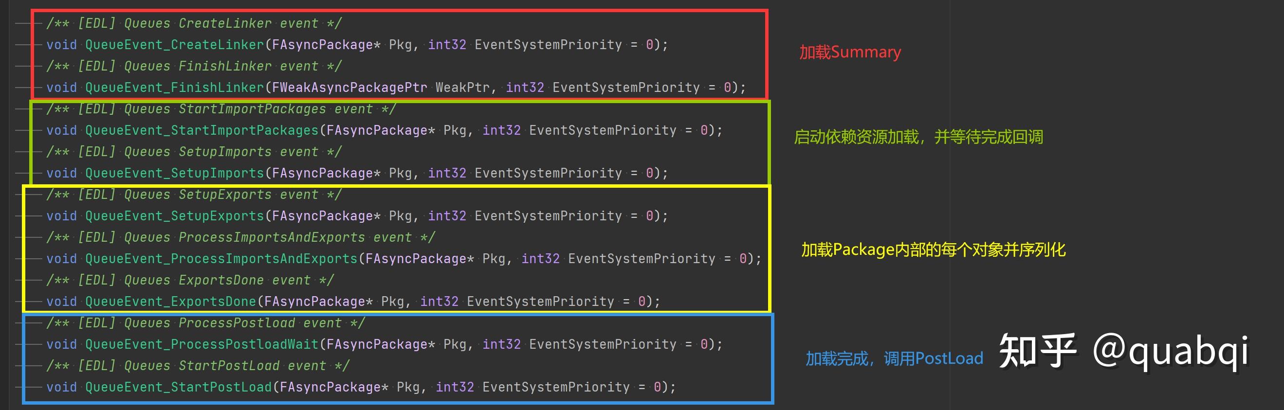 在EDL内部会把加载流程拆成多个Event,每个Event会做对应的工作,大部分Event结束时会通过入队操作直接开始下个Event,(Import的Event会通过计数等待前置都完成后才开始下个Event),下面对应加载的4个流程