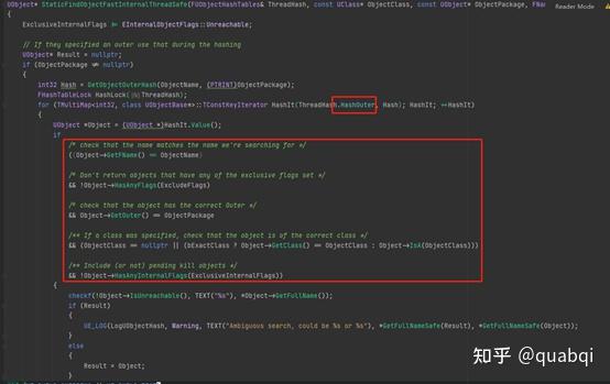 可以看到这里传入的ObjectName(资源路径)会被GetObjectOuterHash转为hash值,通过Hash值在ThreadHash上取到一个对象列表,之后再根据条件取得要查找的对象(具体条件看上面红色框),这个ThreadHash结构如下