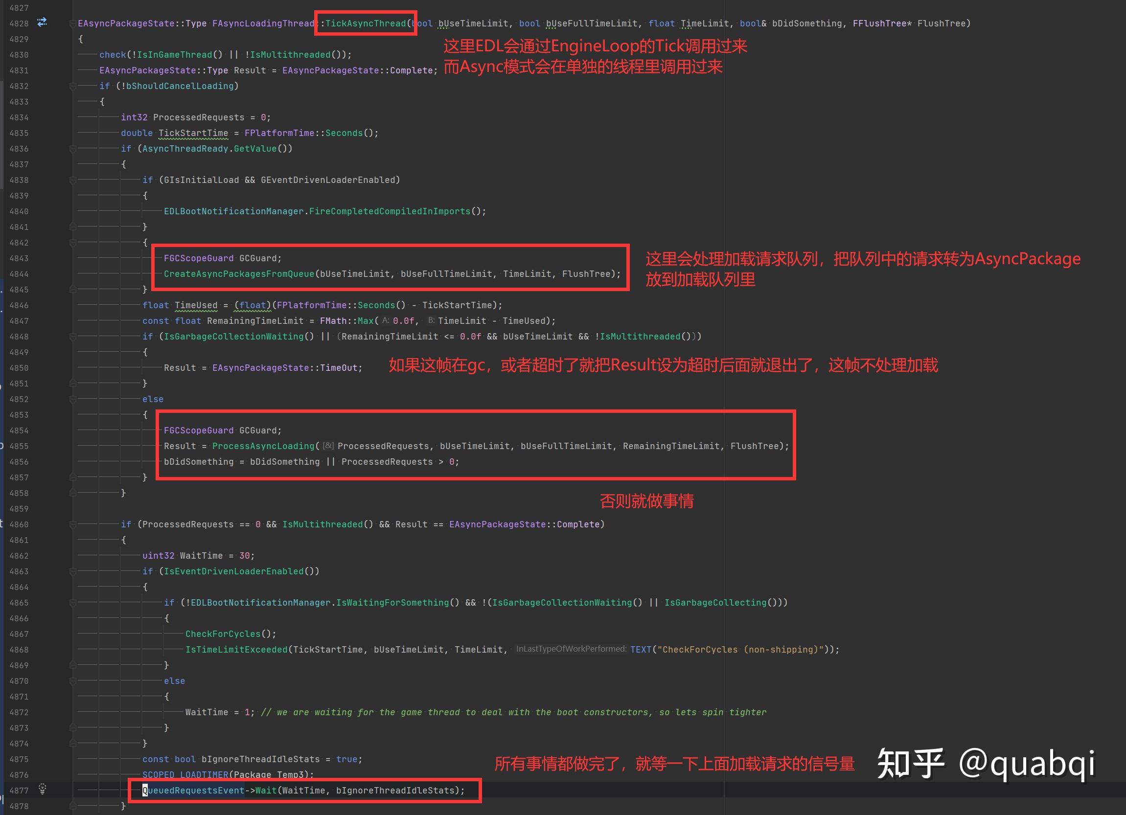 这个类是负责资源加载的主类,加载逻辑主要是在TickAsyncLoading中执行的,虽然类名以Thread为结尾,但其实加载这个工作根据不同模式也可以不在一个单独的线程来做。