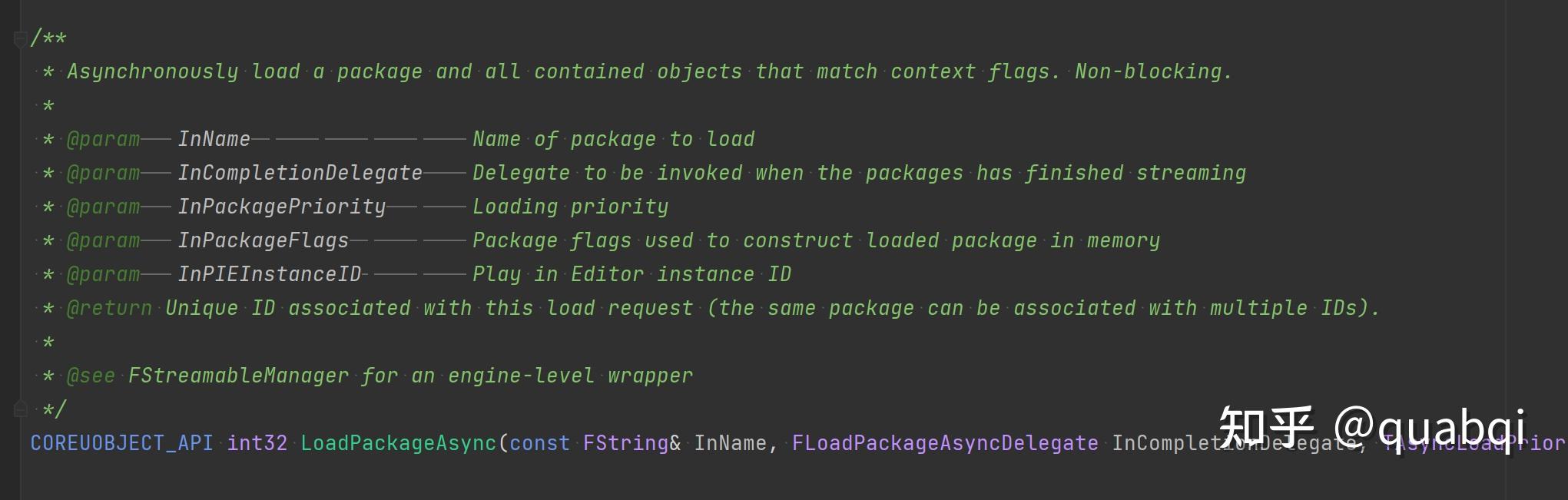 这几个函数,其实都是更上层的封装,最终所有的加载都会走到 LoadPackageAsync 函数。这个函数就是UE4资源加载的大入口,后面整套资源加载都隐藏在了这个函数之后。其中最后一个FStreamableManager::RequestAsyncLoad是异步加载,可以提交要加载的资源路径和加载的回调函数,之后引擎在完成或失败时回调业务。
