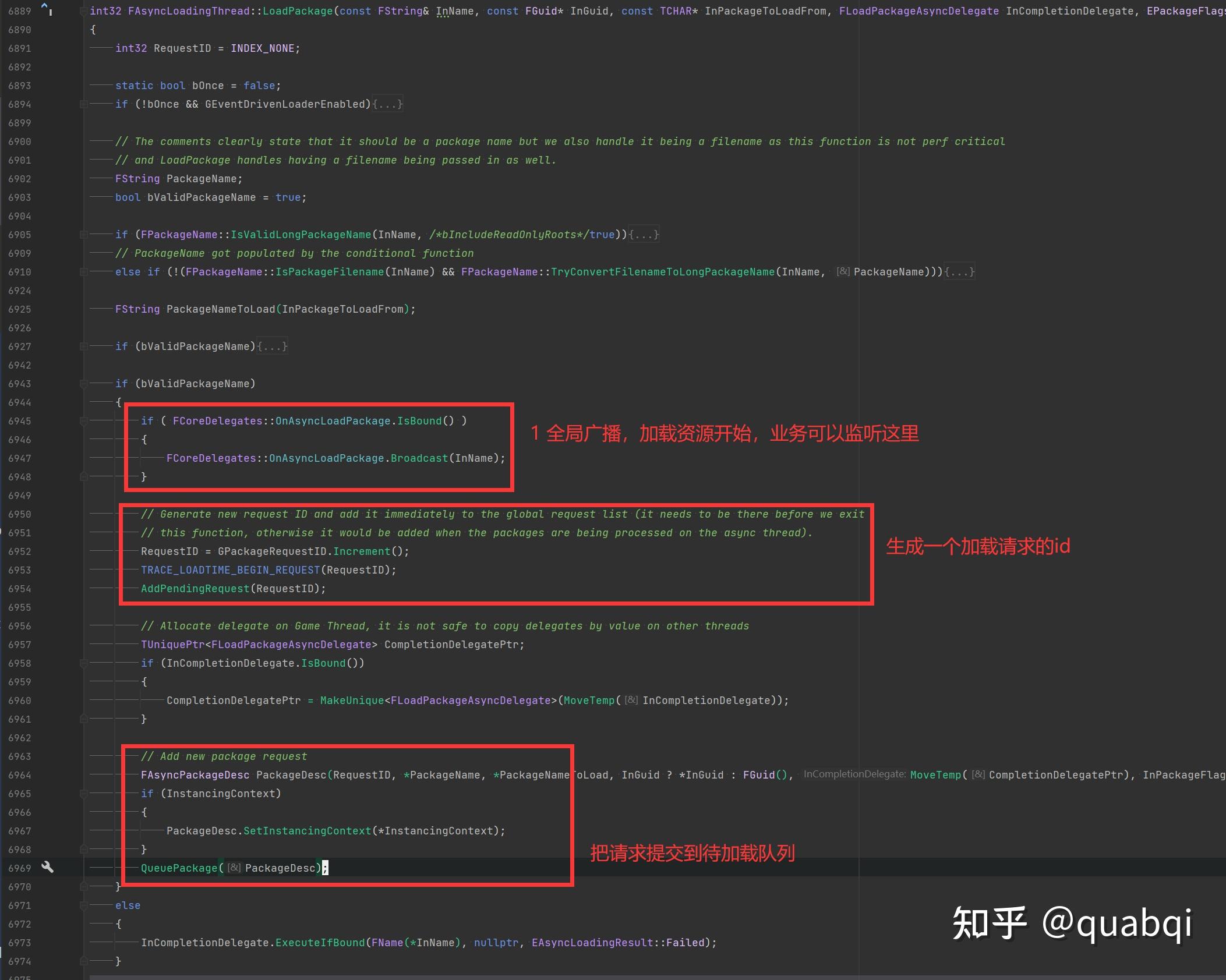 内部会调用到AsyncLoadingThread类的LoadPackage函数,看下面代码