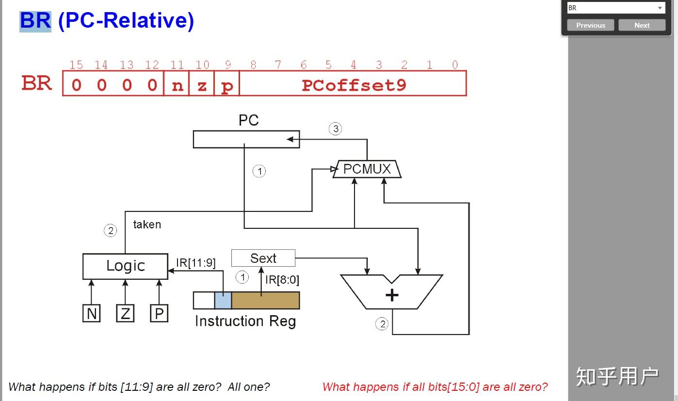 n为negative,z为zero,p为positive,该指令将对R0判定,如果符合11-9的条件,就跳转到8-0位或label所指的地址