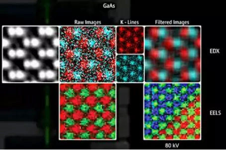 除了通过环形探测器接受的散射信号成像,结合后置的电子损失谱仪及X射线能谱探测器,STEM还可以获取电子能量损失谱(EELS)与微区元素分析(EDS)结果,获得样品的化学组成与电子结构信息。